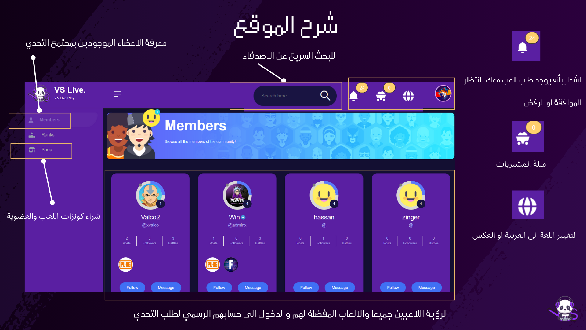 VS Live شرح الموقع